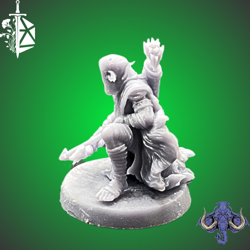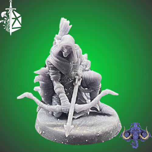 Lie in wait with the Gloomstalk Scout, a 32 mm heroic-scale miniature capturing a sly goblin archer ready to unleash a deadly surprise. Cloaked in a tattered hood and crouched low on one knee, this scout has an arrow nocked and drawn in a weathered longbow, eyes glinting with malicious intent beneath a twisted, toothy grin. Ragged leather armor and patchwork cloth wrap his wiry frame, while a quiver of crooked arrows juts from his back—each fletching singed and worn from countless ambushes.