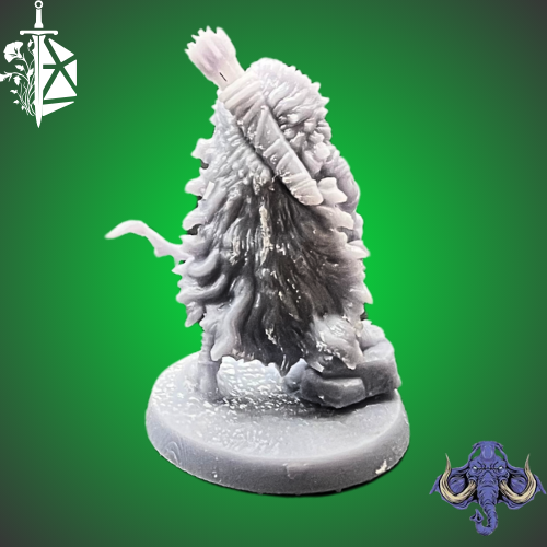 Stand ready with the Goblin Ranger Commander, a 32 mm heroic-scale miniature embodying ruthless precision and keen vigilance. Clad in scavenged leather armor and a distinctive stitched-hide mask that conceals all but his glowing eyes, this commander stands tall atop a rocky outcrop, surveying the battlefield with a silent, calculating gaze. His posture is rigid and disciplined—one hand resting on a quiver of jagged arrows, the other gripping a gnarled longbow, ready to unleash deadly volleys at his foes.